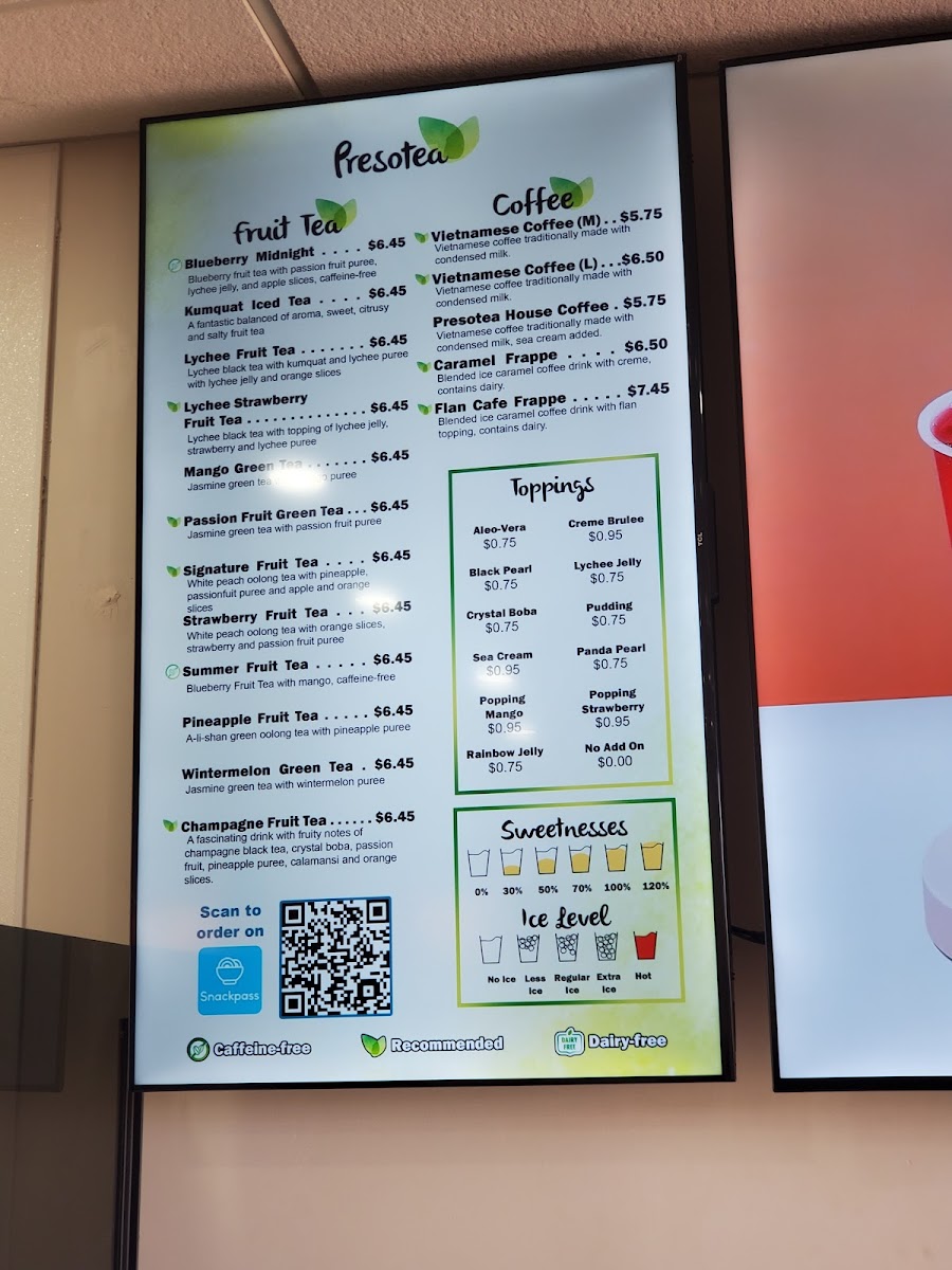 Whether you're stopping by for a quick pick-me-up or a leisurely hangout, Presotea Tampa promises delightful flavors and a welcoming vibe.